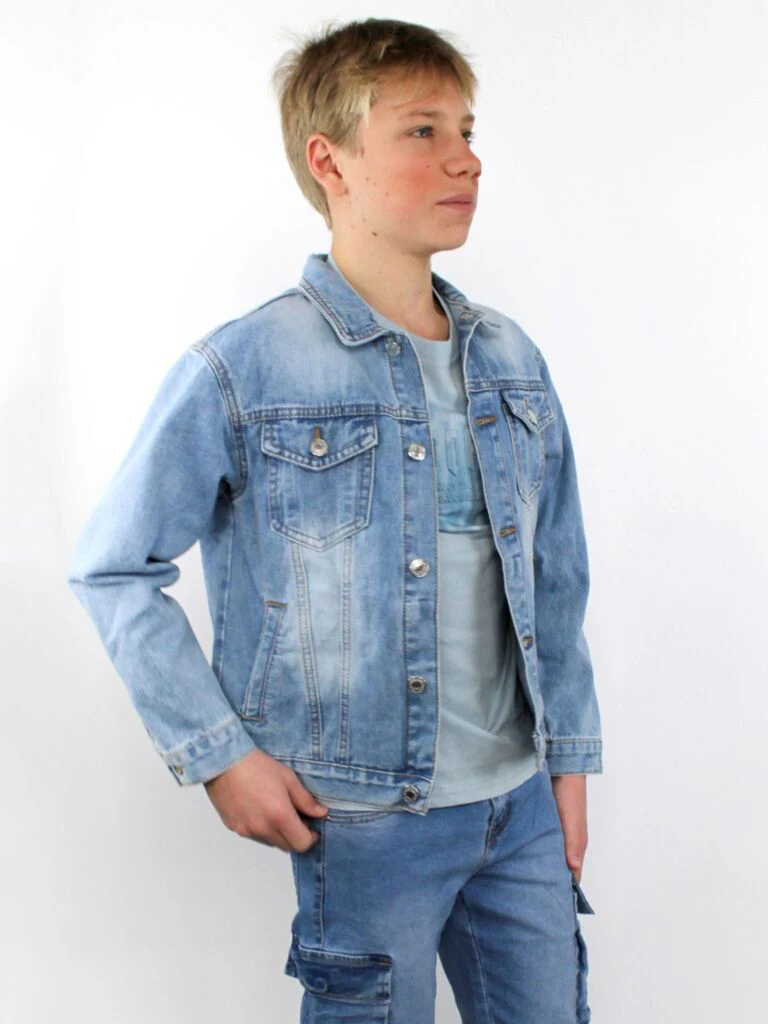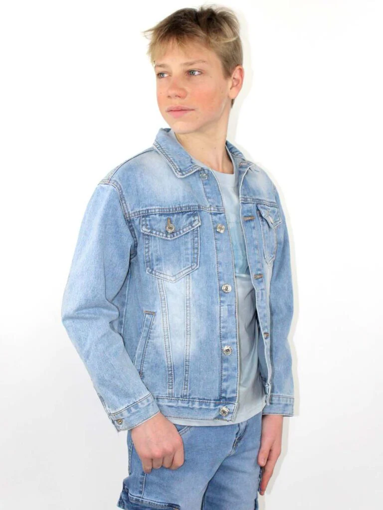 Giacca di jeans con tasche sul petto e bottoni
