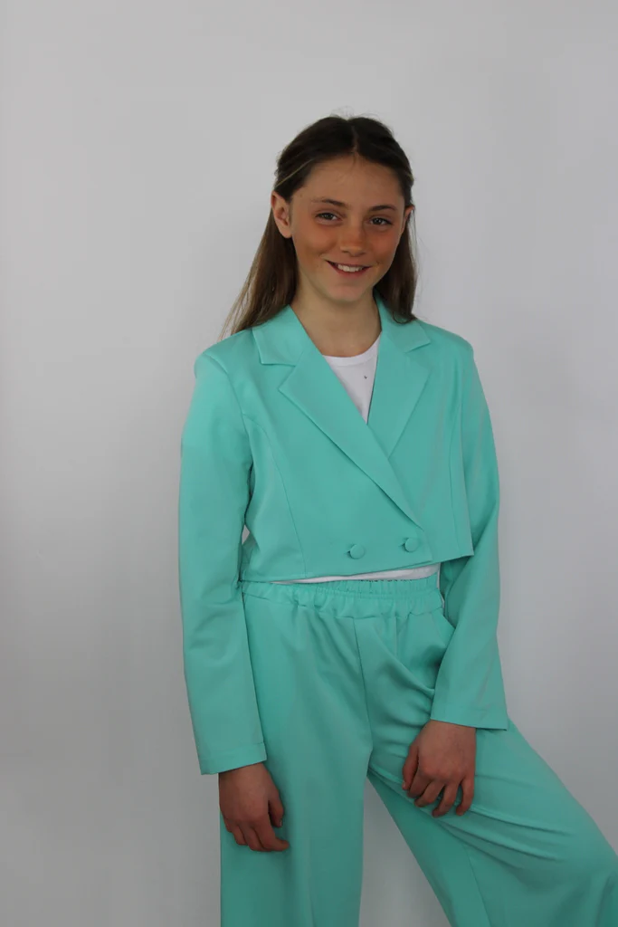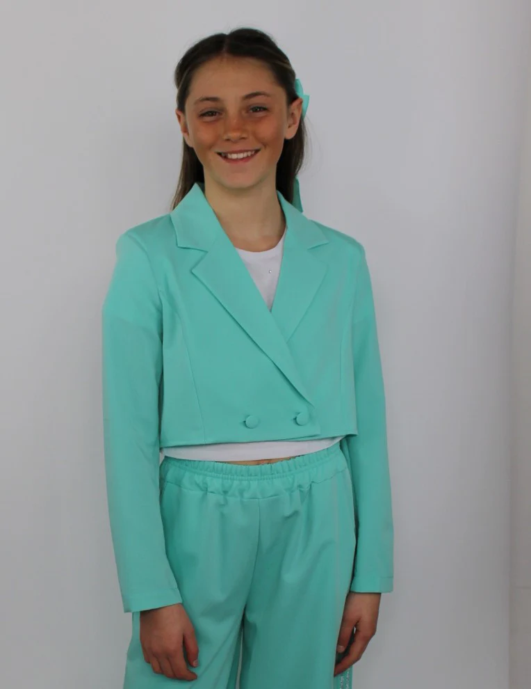 Giacca elegante da bambina doppiopetto, monofila di bottoni, corta in vita, reverse classico.