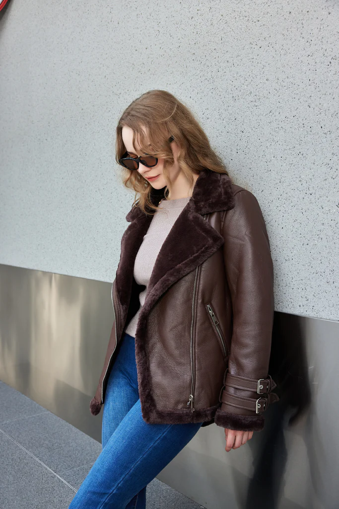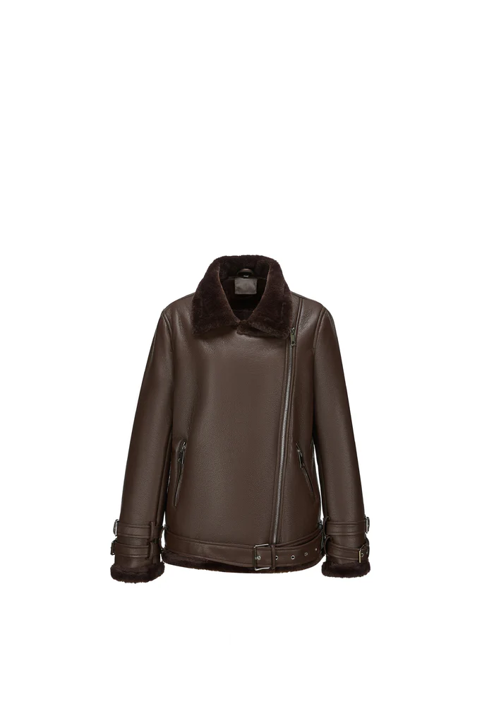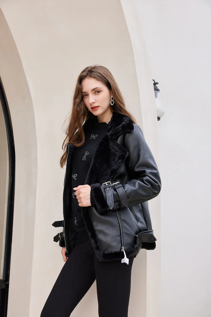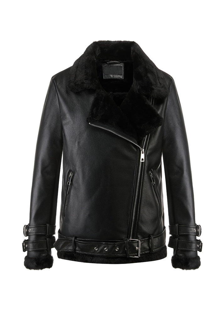DESCRIZIONE: Giacca biker dal taglio moderno realizzata in ecopelle, con interno, colletto e polsini in morbida pelliccia sintetica tono su tono. Presenta chiusura con zip asimmetrica, tasche laterali con zip, cintura regolabile in vita e cinturini con fibbia sui polsi. Un capo caldo e di carattere, perfetto per look casual e urban chic.CODICE PRODOTTO: 260319