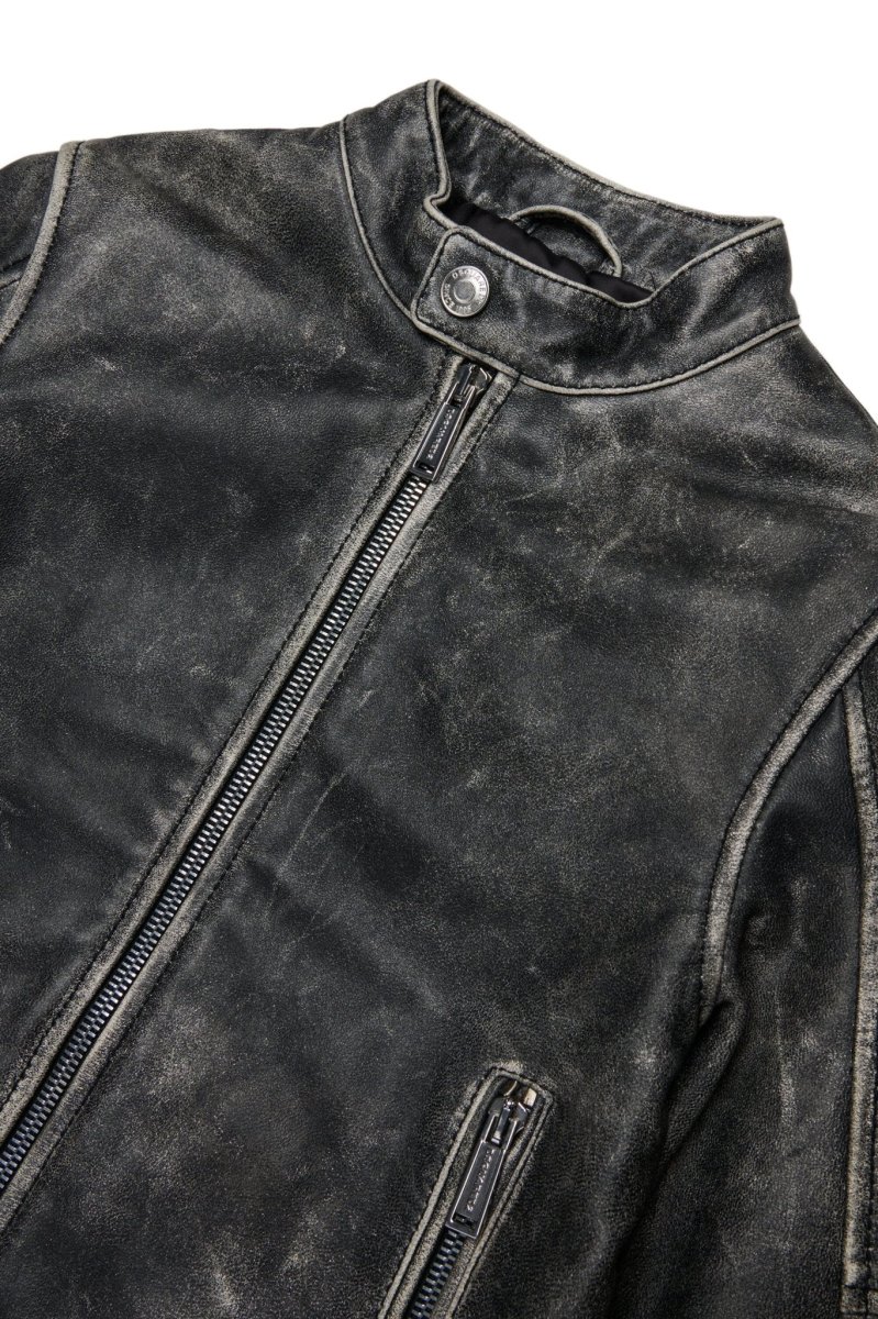 Giacca biker a maniche lunghe in vera pelle effetto vintage con logo impresso sul retro. Un classico senza tempo, rivisitato con l’inconfondibile stile Dsquared2 per rendere unici i look casual di tutti i giorni.