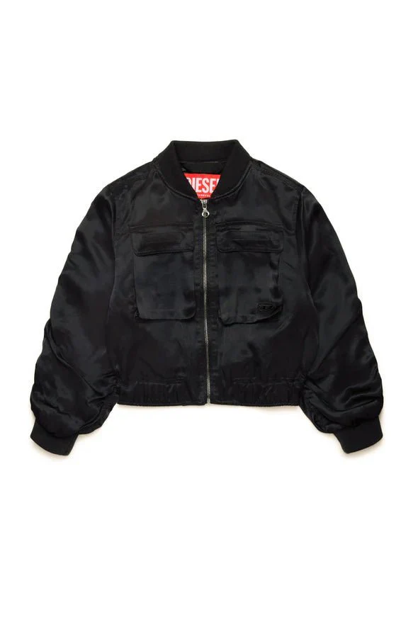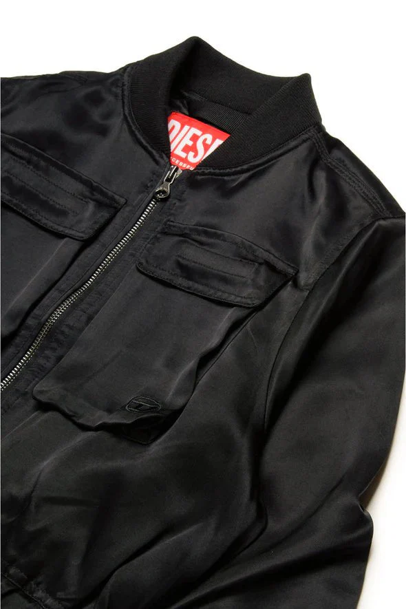 GIACCA NERA BOMBER IN RASO CON TASCHE DIESEL