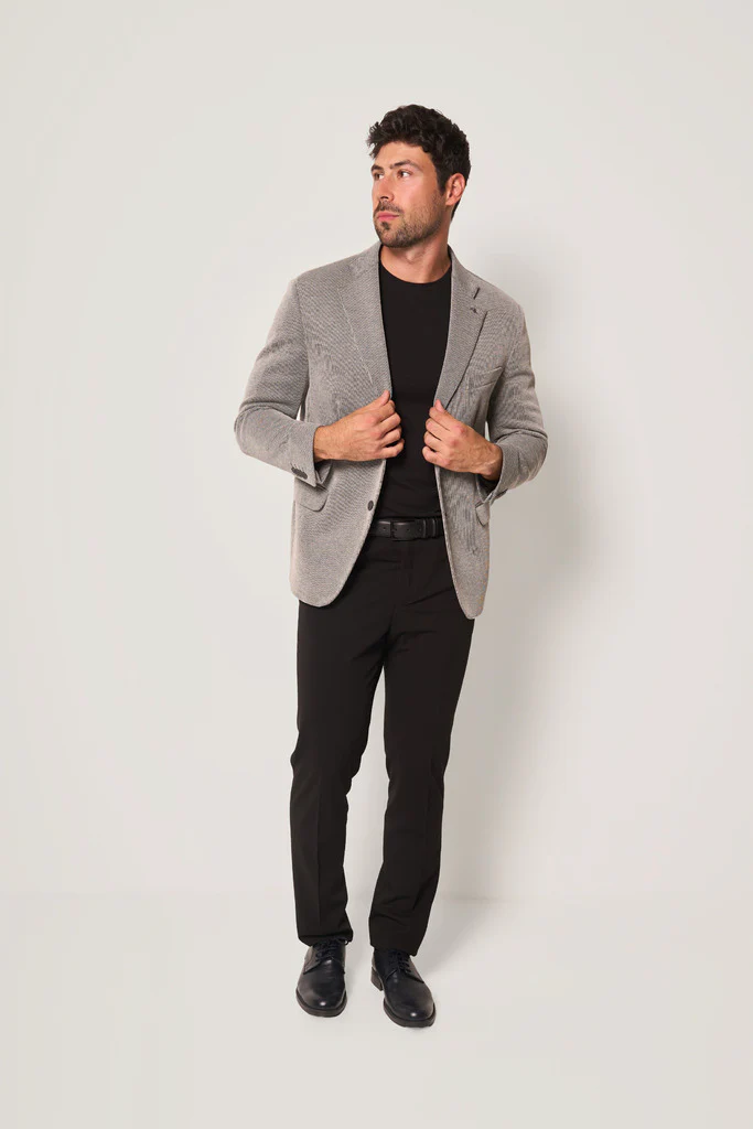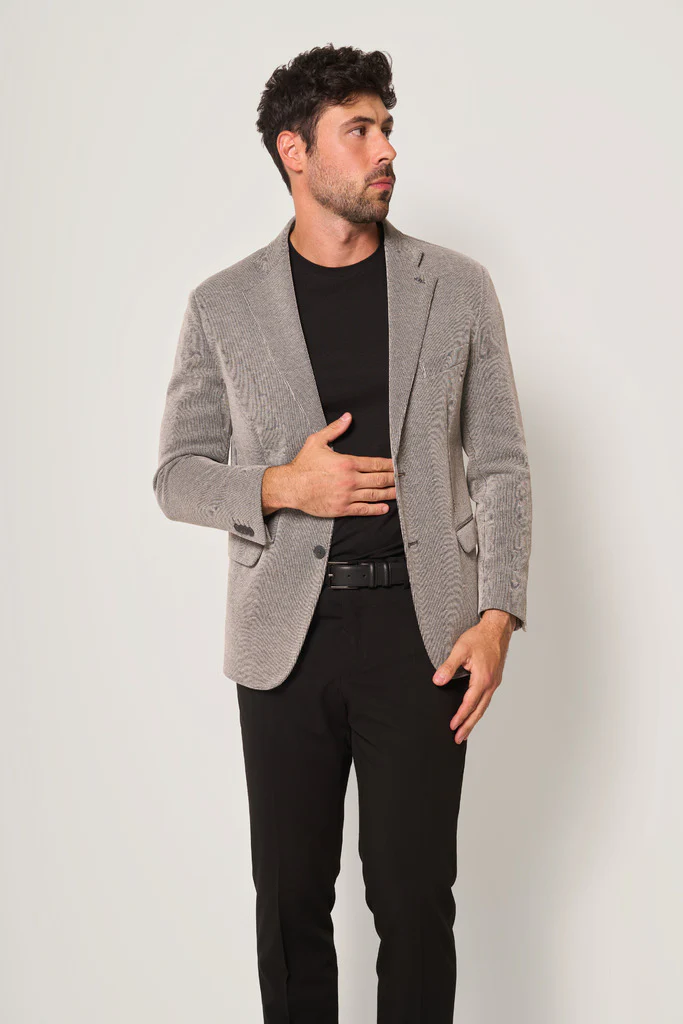 La giacca grigia a micro disegno รจ il capo perfetto per uno stile moderno e raffinato. Realizzata in misto lana stretch, unisce comfort e vestibilitร  impeccabile, adattandosi perfettamente alle esigenze dellโ€™uomo contemporaneo.Il tessuto presenta una micro fantasia tono su tono che dona profonditร  e personalitร , mantenendo al contempo unโ€™eleganza sobria e pulita. Il taglio semi-sartoriale con revers classico, tasche con patta e chiusura a due bottoni la rendono ideale sia per look casual con t-shirt, sia per outfit piรน formali con camicia.