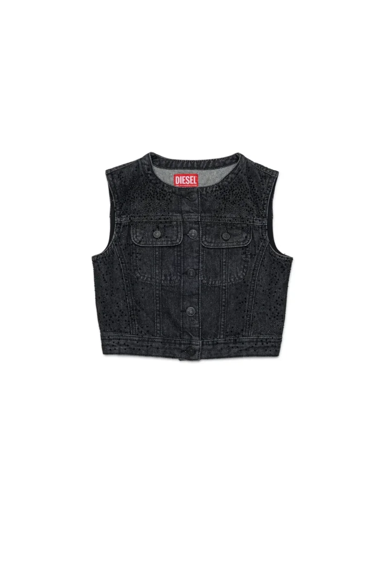 GILET IN DENIM NERO BRILLANTINATO DIESEL