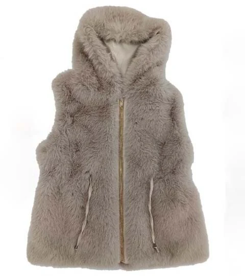Gilet in ecopelliccia con cappuccio e zip