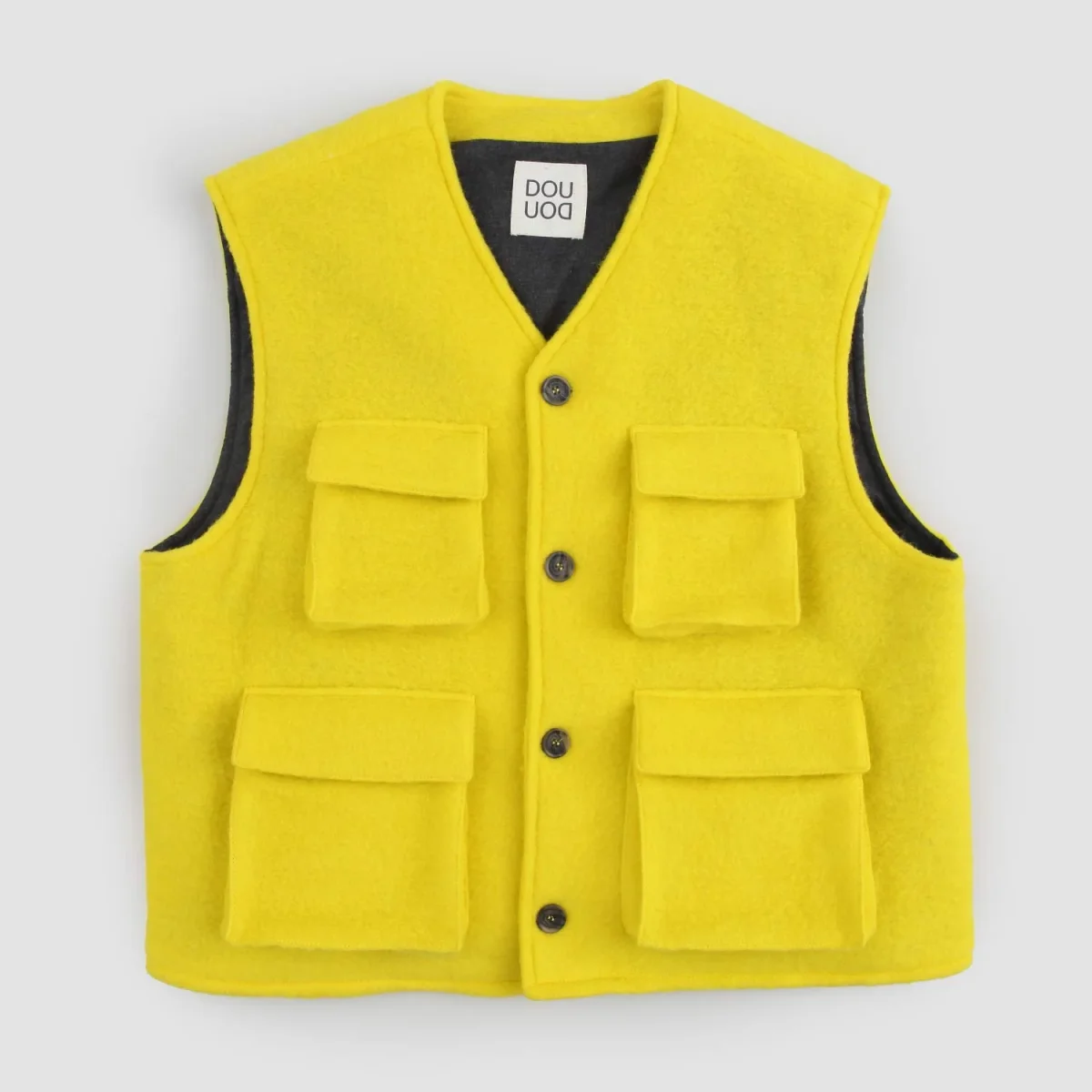 Il gilet lime over della collezione autunno/inverno Douuod Kids รจ un capo versatile e alla moda per ragazze junior e teenager. Realizzato in misto lana, presenta un colore lime vivace, fodera in 100% cotone grigio scuro, chiusura monopetto a bottoni e quattro ampie tasche sul fronte. Il logo Douuod รจ applicato sul retro, conferendo un tocco unico. La vestibilitร over e lo stile ricercato lo rendono ideale per chi cerca un capo unico e di tendenza.