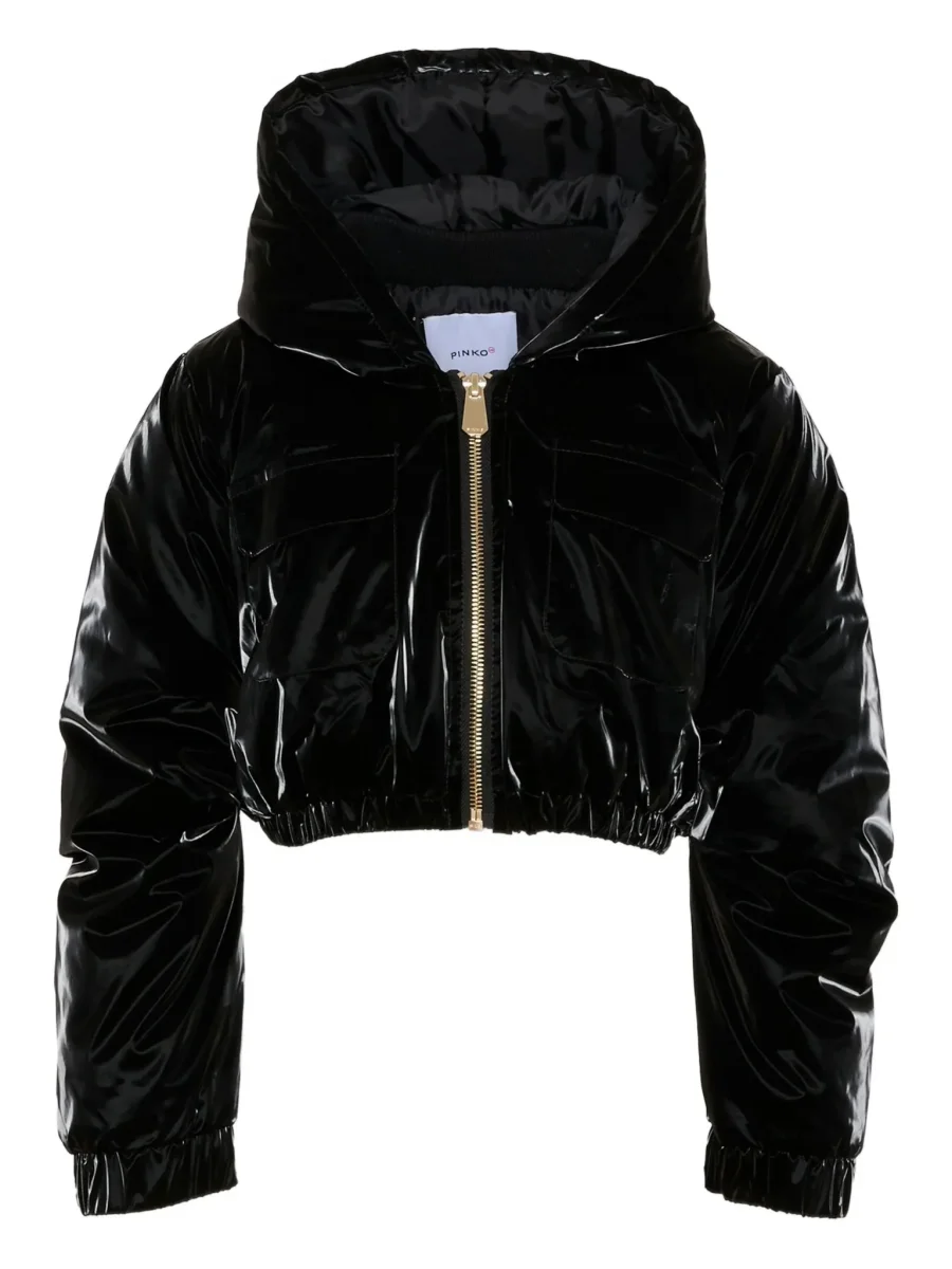 GIUBBINO CON CAPPUCCIO CROPPED NERO PINKO