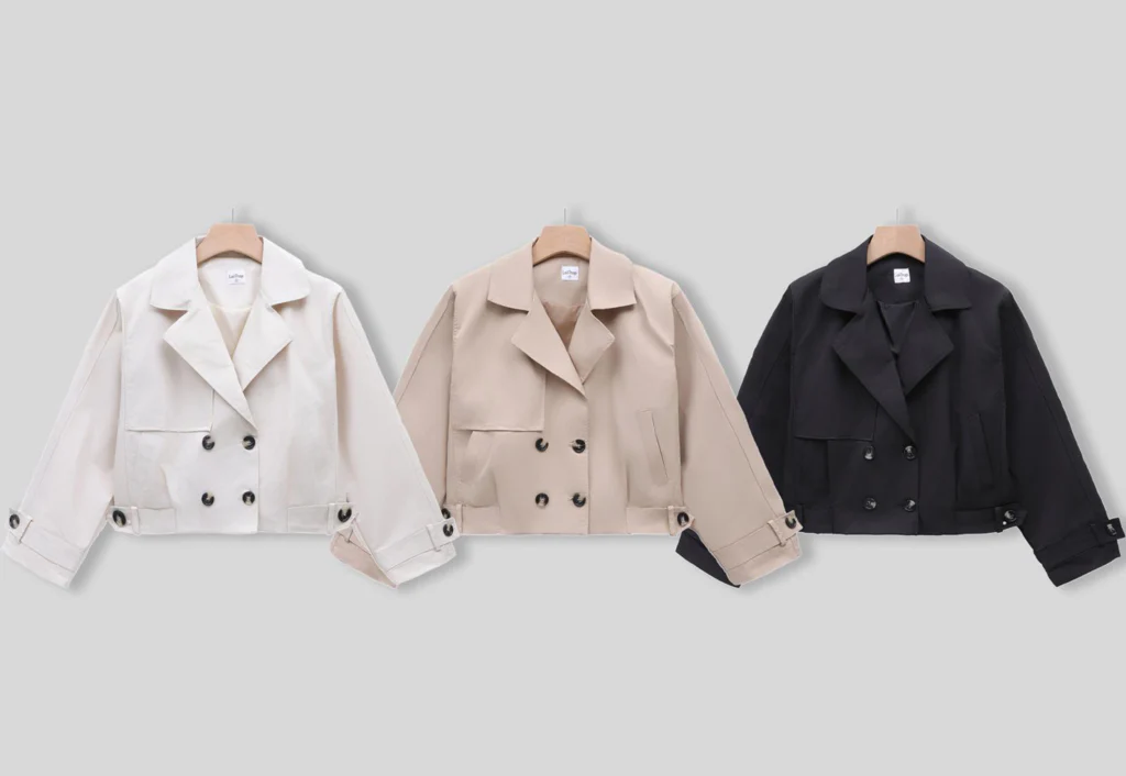 Trench da bambina doppiopetto corto, disponibile in diverse colorazioni.