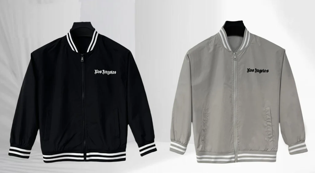 Giubbotto da ragazzo stile college americano. Profili in contrasto, 2 tasche laterali, zip, scritta “Los Angeles” a lato. Elastici ai polsi e in vita. Disponibile in diverse colorazioni.
