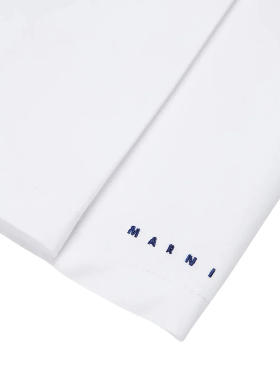 Caratteristiche bianco cotone cuciture tono su tono design con pieghe dettaglio logo design a trapezio Composizione cotone 100%