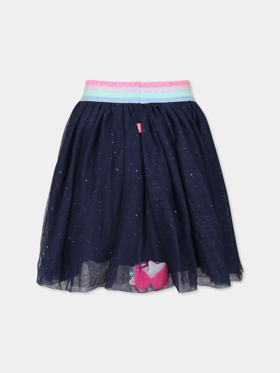 L’elegante gonna Billieblush รจ perfetta per i giorni di festa. Presenta morbido taglio skater, con leggero effetto plissettato. ร foderata e realizzata in tulle glitter, decorato da elementi di paillettes di diverse forme. L’elastico a righe multicolori compone la vita.