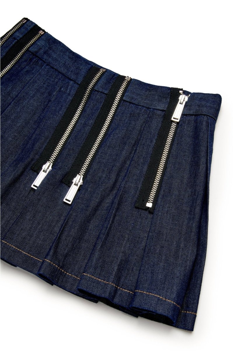 Gonna midi in denim scuro. Presenta una decorazione con zip sul davanti. Chiusura con cerniera laterale. Un capo facile da abbinare a diverse occasioni.