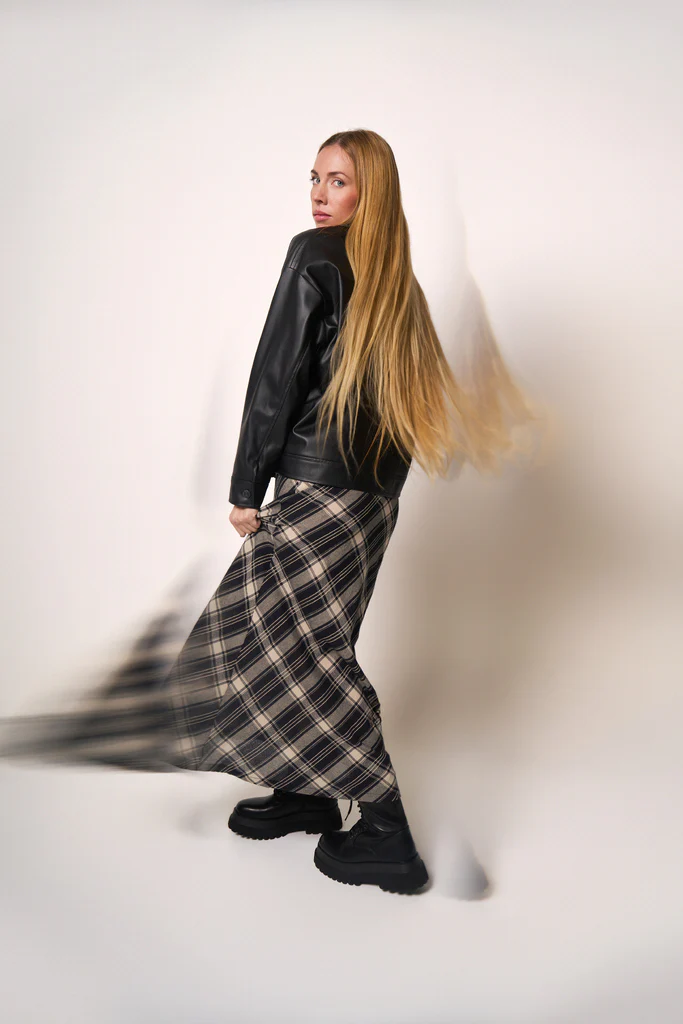 Gonna midi a quadri con linea fluida