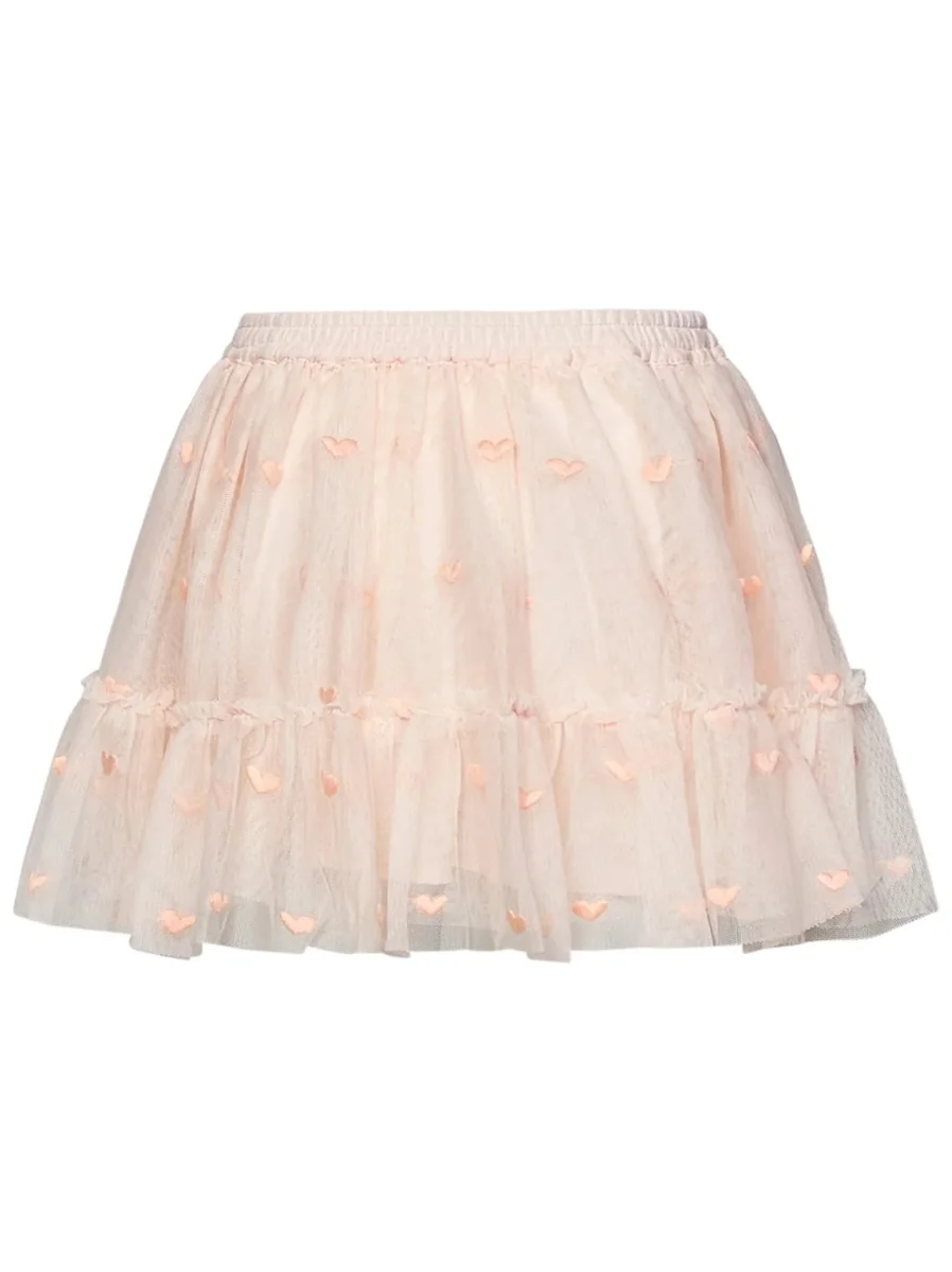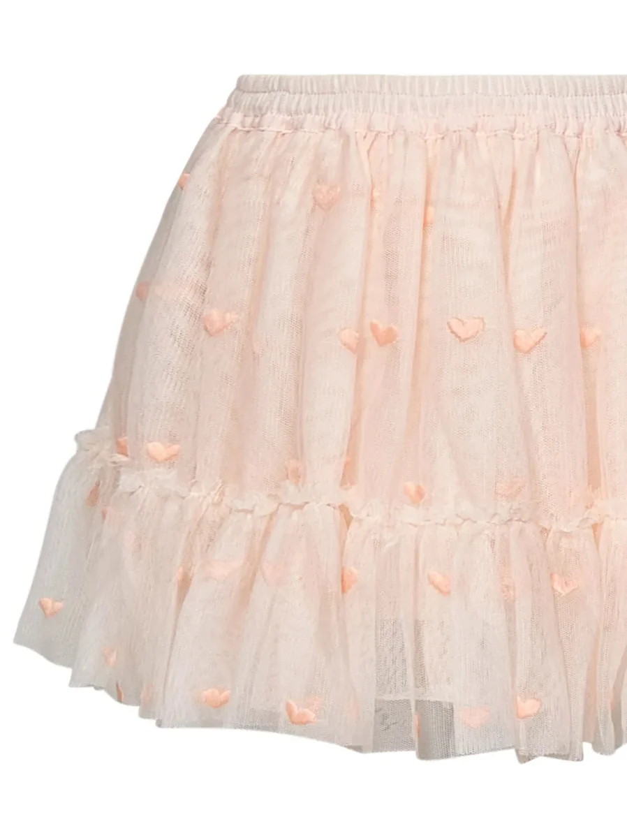 Vita elasticizzata Orlo dritto Inserti con ruches Fondo plissettato Cuori ricamati tono su tono all-over Fit regolare Interno foderato Colore: rosa 100% Poliestere: Fodera: 100% Viscosa