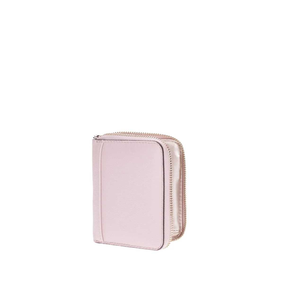 Portafoglio elegante in simil pelle. La cerniera lampo assicura una chiusura sicura, mentre la metalleria color oro pallido aggiunge un tocco di lusso discreto. Il logo in metallo sulla parte frontale completa il design sofisticato e minimalista. Compatto e pratico, รจ perfetto per chi cerca uno stile raffinato e durevole, senza rinunciare alla funzionalitร .