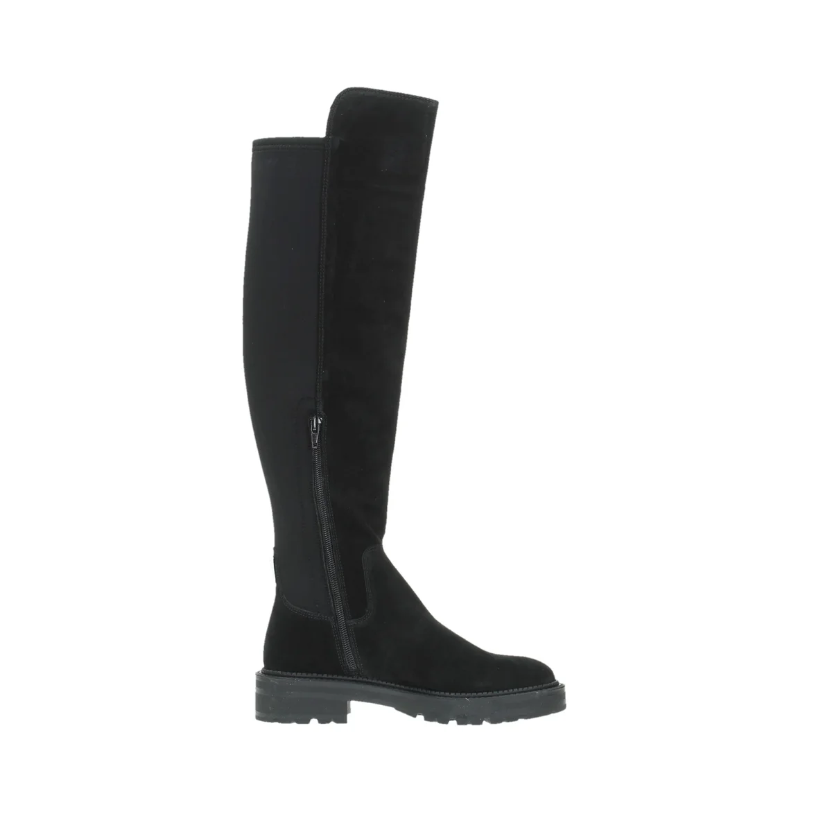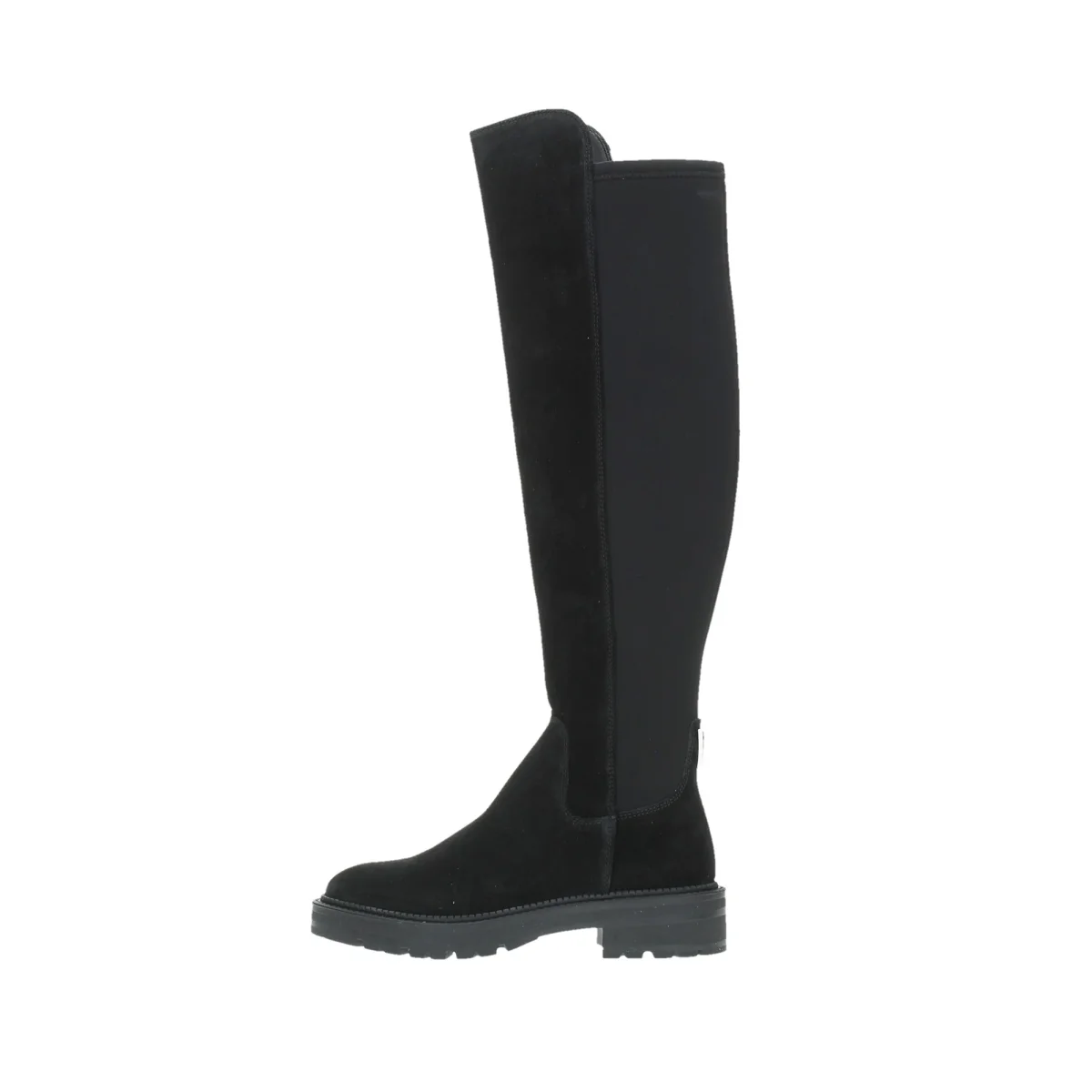 Lo stivale alto รจ realizzato in vera pelle scamosciata, con una punta tonda che conferisce un aspetto elegante e classico. Il tacco basso da 2,5 cm offre comfort, mentre la chiusura con cerniera lampo e l’inserto stretch sul retro garantiscono una vestibilitร perfetta e facile da indossare. Il triangolo logo sul retro aggiunge un dettaglio distintivo. La composizione della tomaia include il 70% di vera pelle e il 30% di cotone, con un sottopiede in pelle e lana per maggiore comfort. La fodera interna รจ in tessuto, mentre la suola in gomma assicura resistenza e aderenza. L’altezza del gambale รจ di 51 cm con una circonferenza di 34 cm, rendendo questo stivale ideale per un look raffinato e versatile.