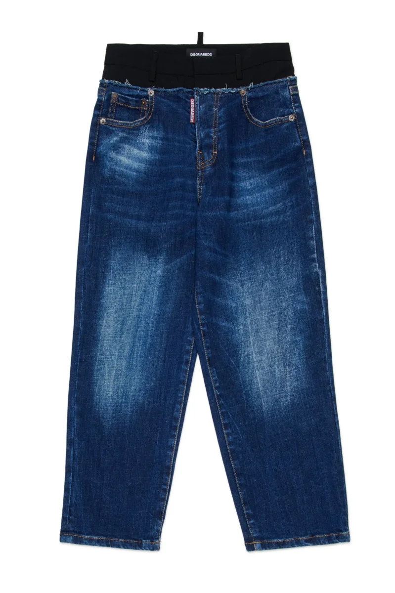 JEANS BLU CON VITA IN TESSUTO NERO DSQUARED2