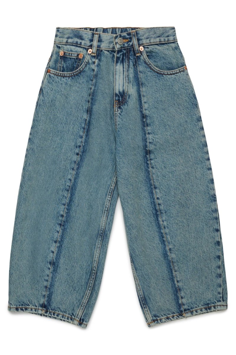 Jeans comodi color blu medio con cuciture ergonomiche effetto palloncino che aggiungono volume al modello. Perfetti per completare i look casual. Chiusura con bottone e cerniera Toppa con marchio e logo numerico sul retro Cuciture lungo la gamba con effetto palloncino Realizzato in denim di cotone al 100% Vestibilitร comoda: la silhouette รจ oversize e […]