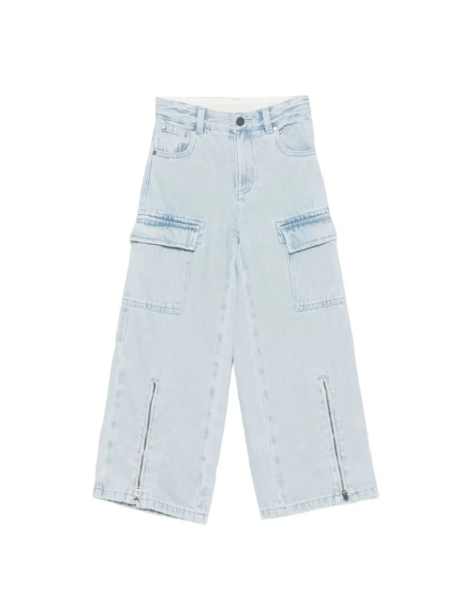 Il prodotto Jeans per bambina Stella McCartney Kids in denim con tasche cargo รจ disponibile sullo store online Angeluxury.it Realizzato in Cotone 100%. Il prodotto presenta un colore azzurro, tasche cargo, cerniera e bottone. Varie taglie a catalogo, appartiene alla collezione Stella McCartney Kids Autunno/Inverno 2025 ed รจ disponibile in pronta spedizione con consegna in 24/48h per l’Italia.