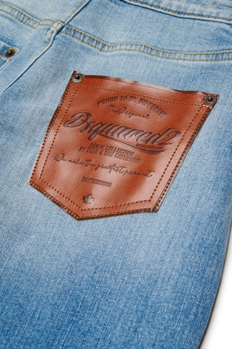 JEANS CHIARO CON TASCA SUL RETRO IN ECOPELLE MARRONE DSQUARED2