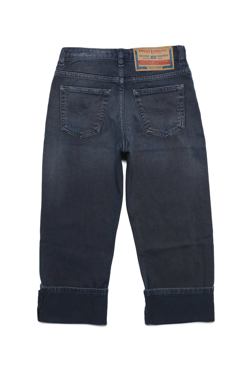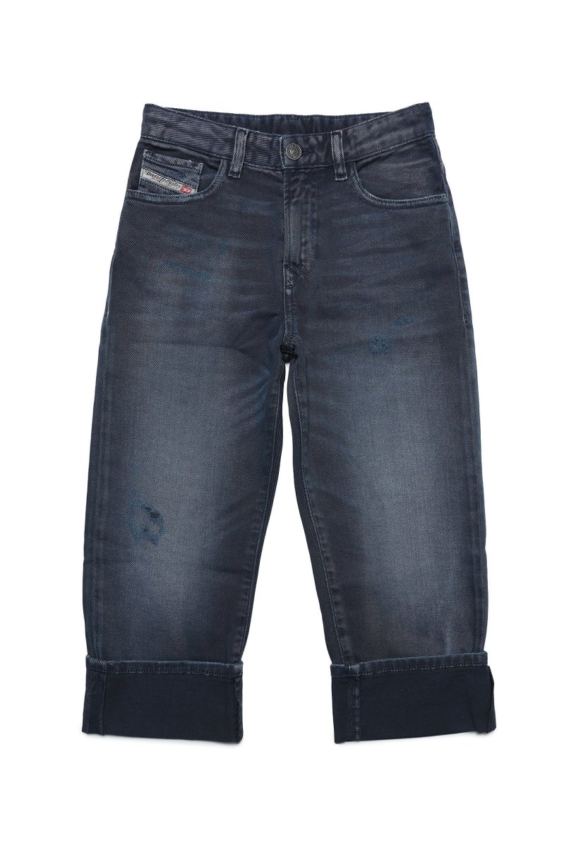 Slim-fit con vita regular e gamba dritta. Un modello versatile, che si adatta a ogni situazione e che ben rappresenta lโ€™attitudine Diesel originale. In denim 100% cotone blu medio con lavaggio stonewash e stampa al laser Diesel monogram all-over. Fa parte della collezione Mini Me.