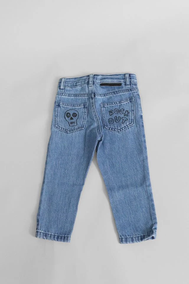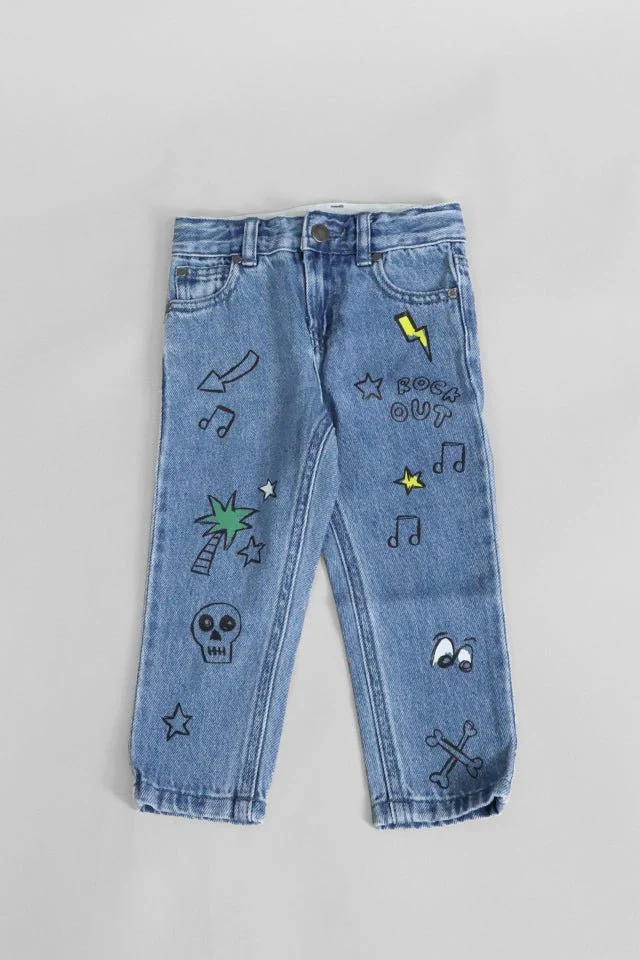 Jeans StellaMcCartney composizione 100% cotone. Chiusura bottone e zip, tasche laterali e sul retro, fantasia scritte nere rock. Vestibilitร regolare.