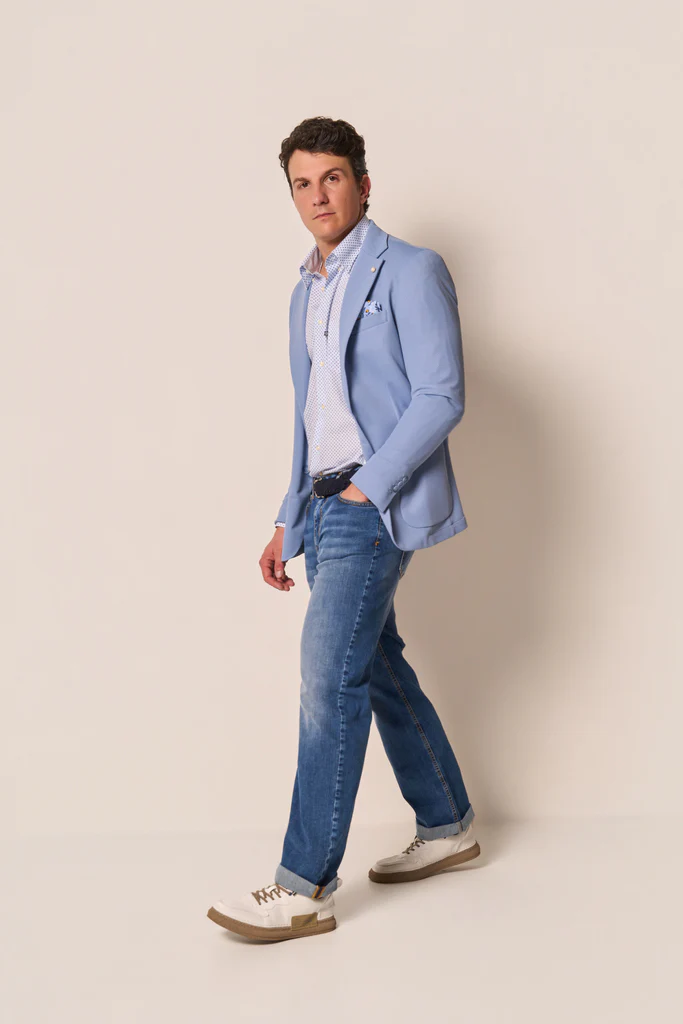 Descrizione:Jeans uomo in denim blu medio con leggere sfumature, perfetti per un look casual curato e contemporaneo. Realizzati in cotone resistente con una leggera elasticitร , assicurano comfort e libertร di movimento durante tutta la giornata.Il modello presenta vestibilitร regular con gamba dritta, ideale per valorizzare la silhouette senza risultare aderente. La vita รจ regolare, con chiusura classica a bottone e zip e passanti per cintura. Le cuciture a contrasto e il fondo leggermente risvoltato aggiungono un dettaglio moderno e dinamico.Facili da abbinare a blazer, camicie o t-shirt, rappresentano un capo versatile e indispensabile nel guardaroba maschile, perfetto per outfit smart-casual o per il tempo libero.
