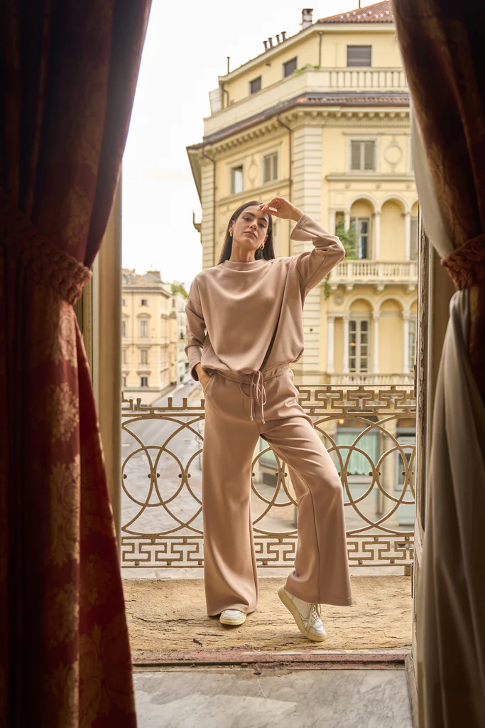 Maglia donna a maniche lunghe, caratterizzata da collo alto morbido e linea ampia con elastico in vita. Modello minimal e versatile per look casual chic.