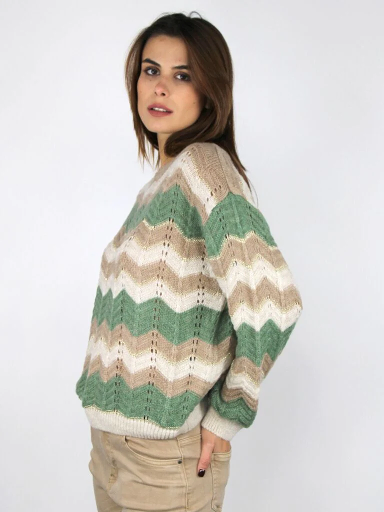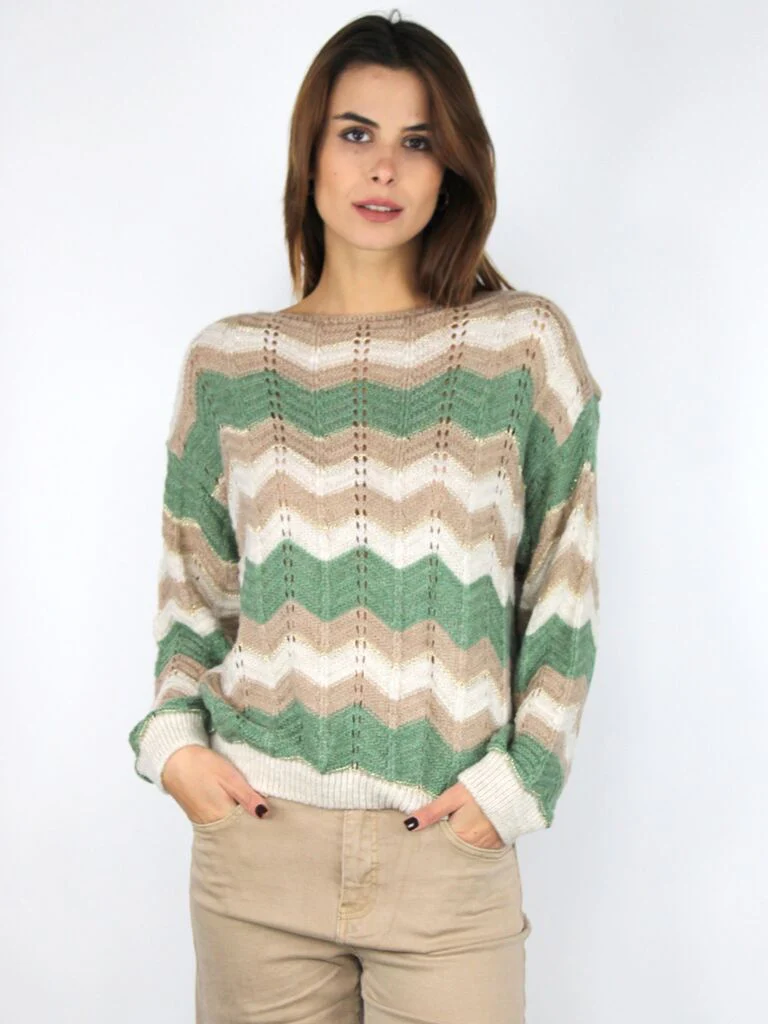 DESCRIZIONE: Maglia manica lunga a fantasia zig zag traforata Composizione: 80% acrilico, 20% poliammide Codice prodotto: 254281