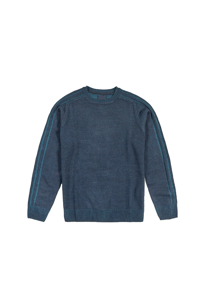 Maglia da uomo a maniche lunghe con girocollo, caratterizzata da lavorazione in maglia fine e dettagli a costine su polsini e fondo. Le fasce a contrasto lungo le maniche aggiungono un tocco moderno e sportivo, rendendola adatta sia a look casual che piรน curati.