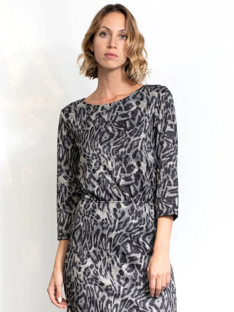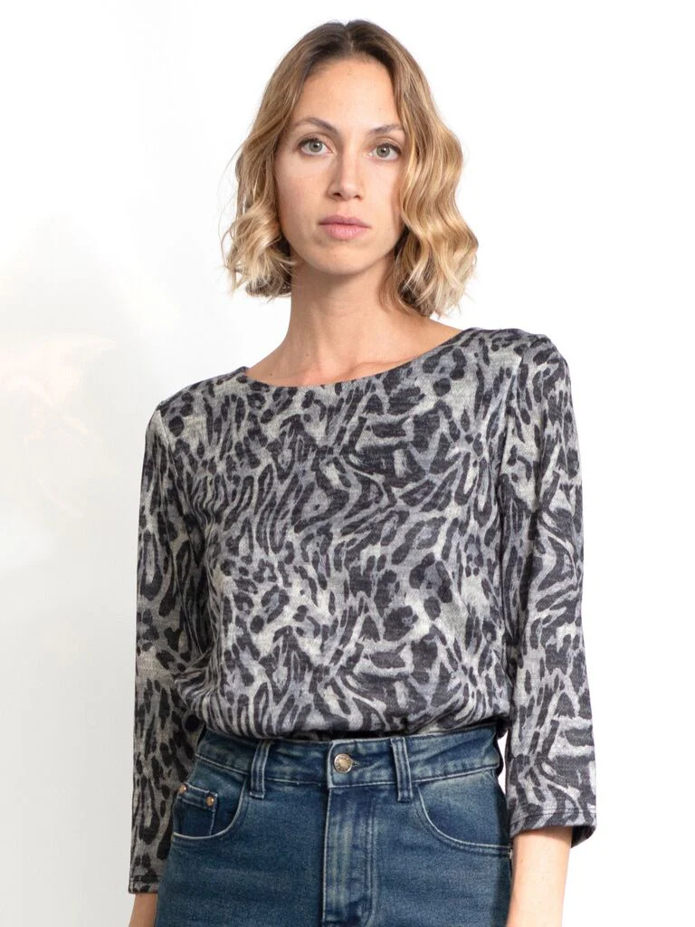 Maglia manica 3/4 tutta leopardata, tessuto mano calda