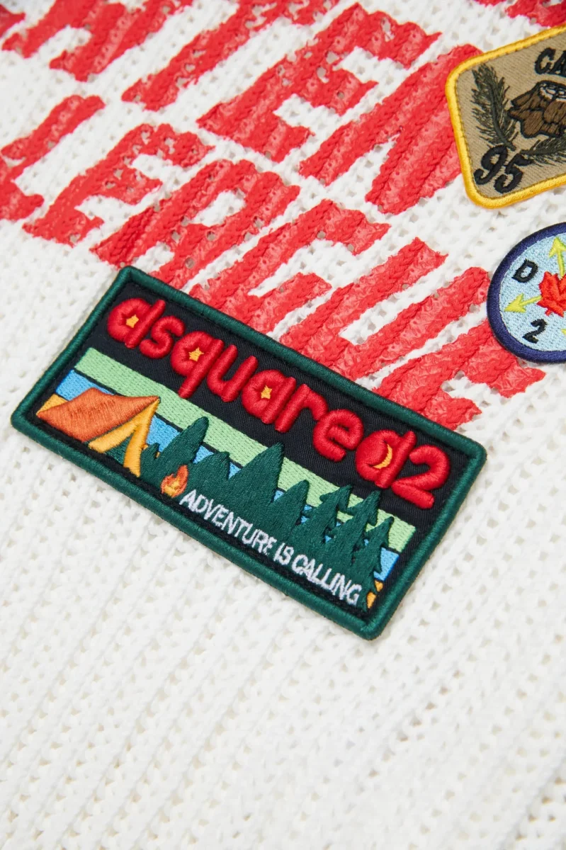 MAGLIONE BIANCO CON LOGO ROSSO DSQUARED2