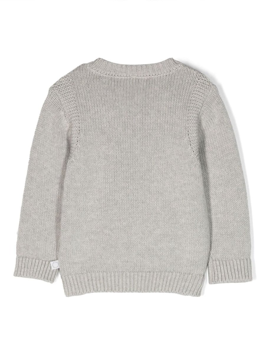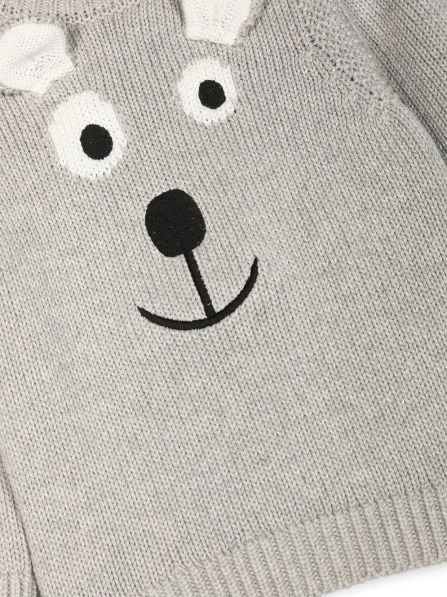 Maglione di Stella McCartney grigio, cotone, maglia con lavorazione a intarsio, motivo con viso, dettagli in 3D, scollo rotondo, chiusura a bottoni, maniche lunghe e orlo dritto.