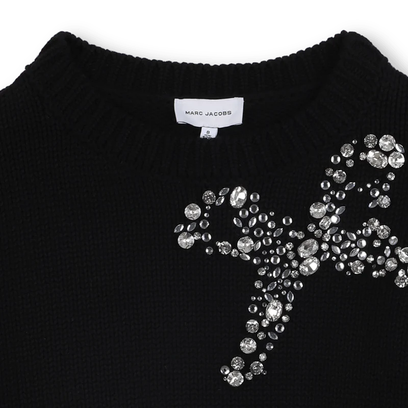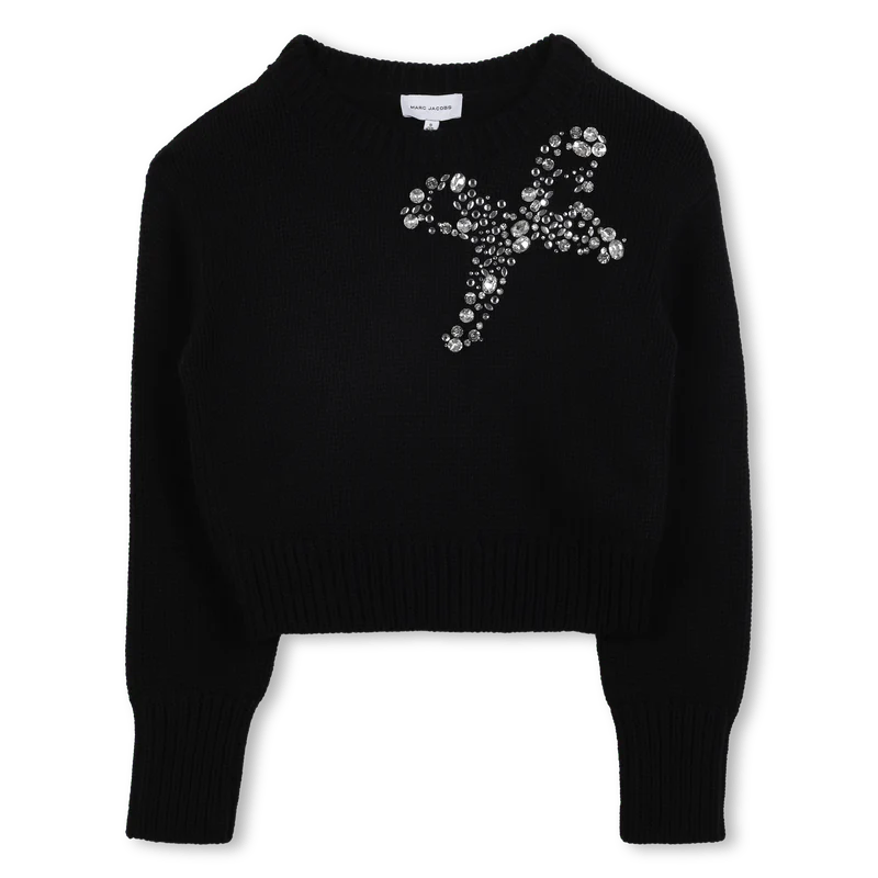 MAGLIONE NERO CON STRASS A FORMA DI FIOCCO MARC JACOBS