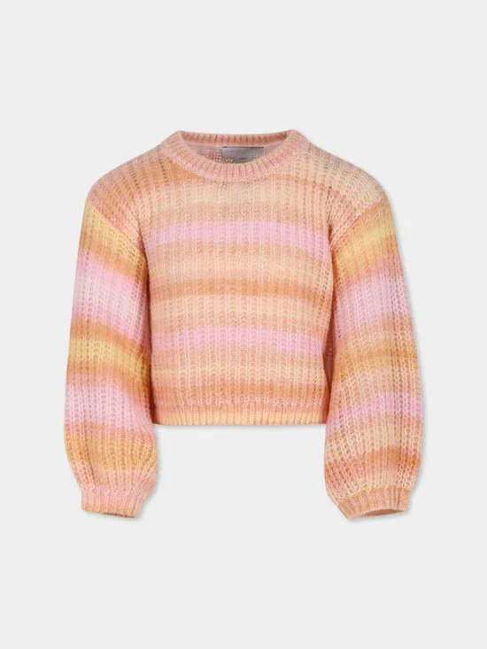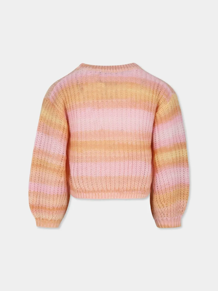 Maglione rosa lavorato a maglia, effetto sfumato, con maniche lunghe, girocollo, polsini e orlo a costine; realizzato con poliestere riciclato. Composizione: 100%poliestere