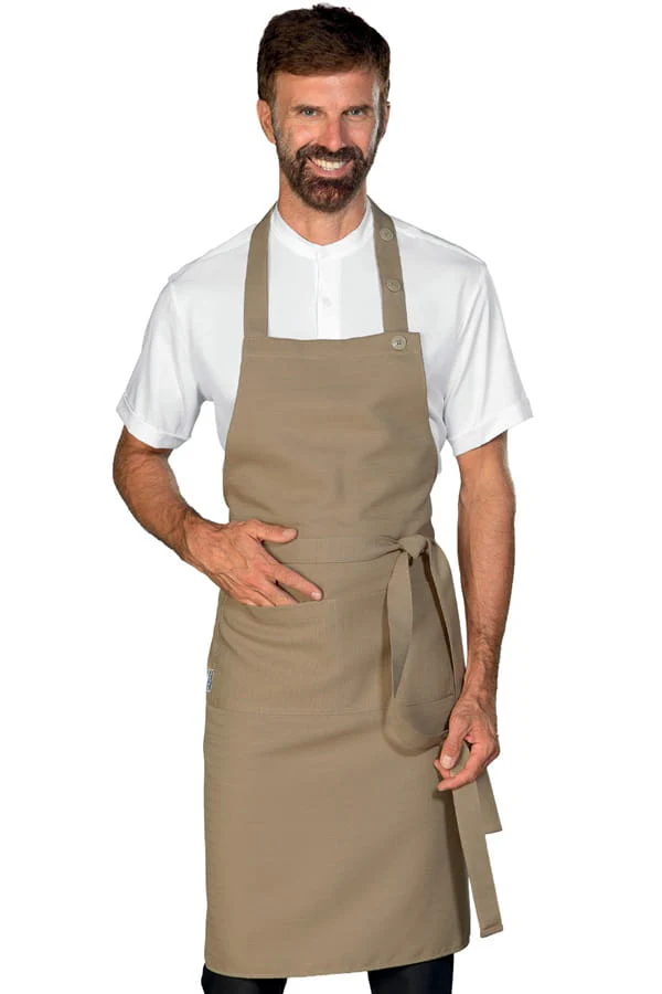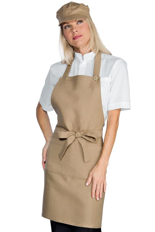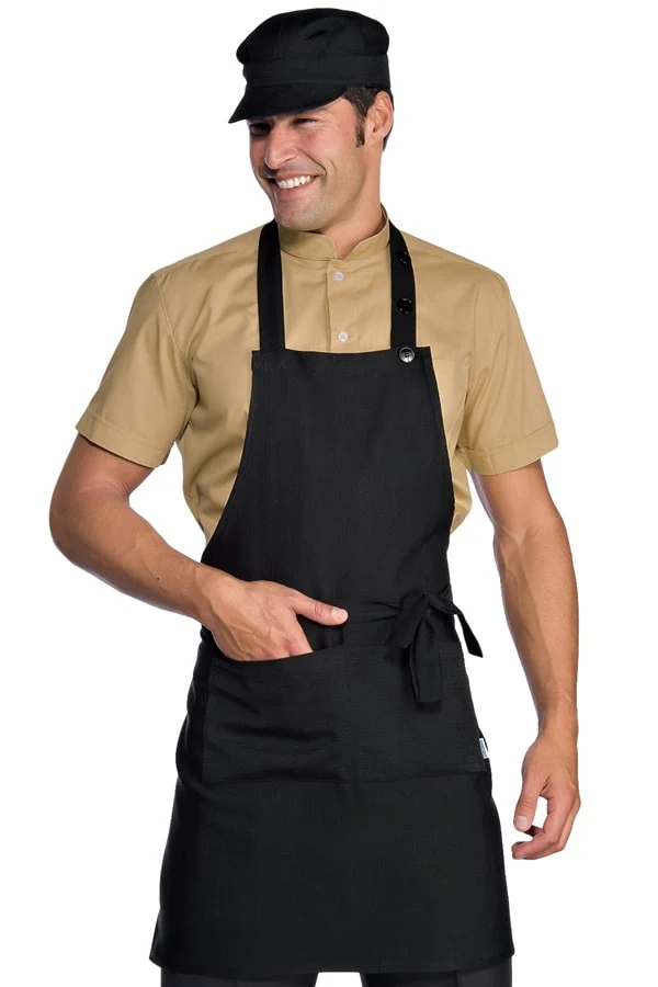 Elegante grembiule con pettorina regolabile da 2 bottoni.