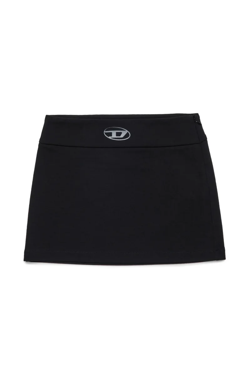 Minigonna in Punto Milano dalla silhouette lineare. Il tessuto leggero dona fluiditร al capo, perfetto per uno stile raffinato e contemporaneo. Chiusura con cerniera laterale Lunghezza mini fino a metร coscia Stampa effetto gomma ovale D sulla cintura Tessuto leggero in misto viscosa Silhouette lineare