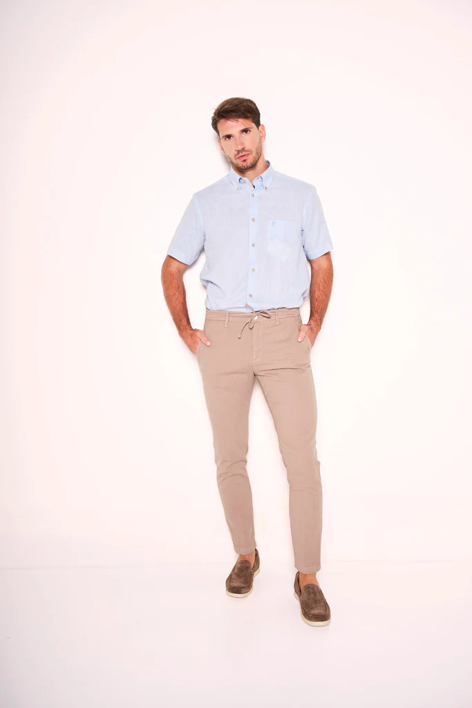 Comoditร e raffinatezza si incontrano in questi pantalacci in misto lino color ghiaccio, pensati per unโestate allโinsegna della praticitร . Il taglio con una pince frontale dona struttura al capo senza rinunciare alla morbidezza, mentre le tasche americane e la chiusura con zip, bottone e coulisse regolabile rendono questi pantaloni estremamente funzionali. La vestibilitร รจ asciutta ma confortevole, adatta sia a look casual che piรน ricercati, abbinata a camicie in lino o polo. Un must-have per chi desidera leggerezza e stile, in cittร come in vacanza.