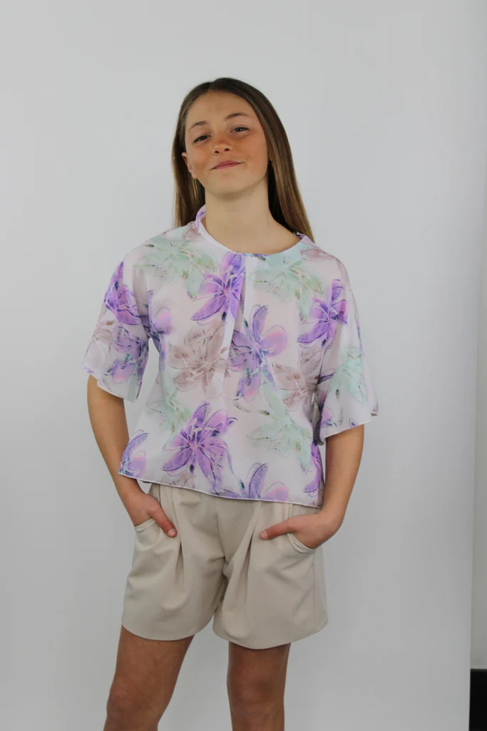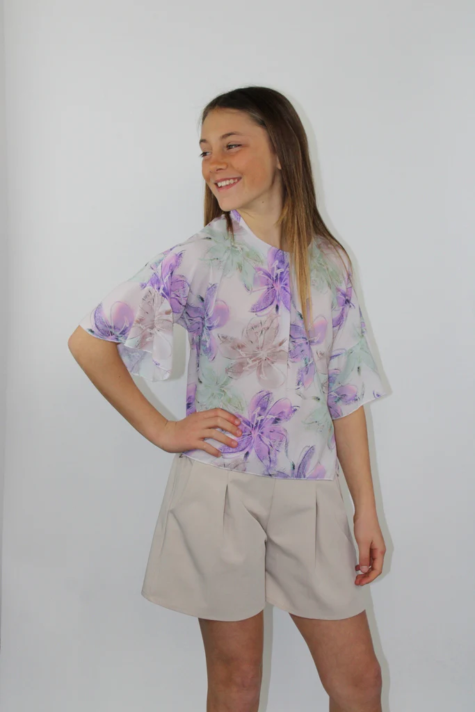 Pantaloncino da bambina con pieghe e 2 tasche. Cintura compresa.