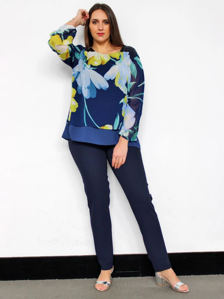 DESCRIZIONEPantalone a sigaretta in tinta unita con chiusura bottone e zip. Dettaglio di profilo in vita in rasoComposizione: 95% poliestere, 5 % elastanCodice prodotto: 243831 La modella indossa una taglia 47 conformata