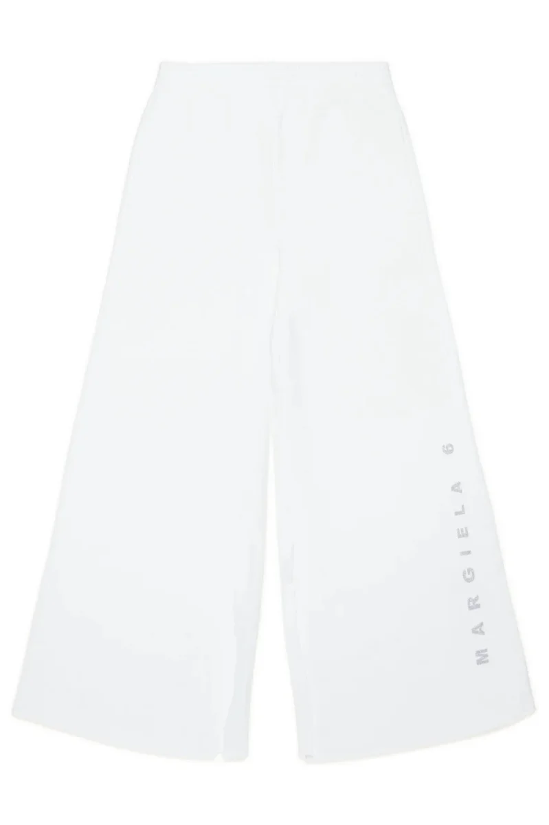 Pantaloni palazzo in felpa. Elastico in vita. Presentano un logo istituzionale argento glitterato sul davanti. Splits interni sul fondo. Tasche anteriori a filetto. Iconica cucitura sul retro. Realizzati in 100% cotone. Un capo trasversale adatto a diverse occasioni.