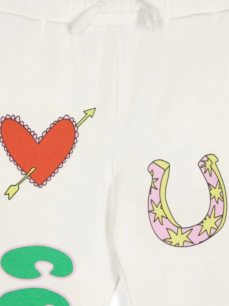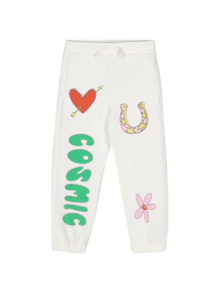 Il prodotto Stella McCartney Kids Pantaloni sportivi Cosmic Cowboy รจ realizzato in Cotone 100%. I pantaloni presentano un colore bianco, cotone, trama jersey, stampa grafica all-over, stampa con testo sulla gamba, vita con coulisse elasticizzata, taglio straight, due tasche laterali a filetto, orli alle caviglie elasticizzati, fodera di pile