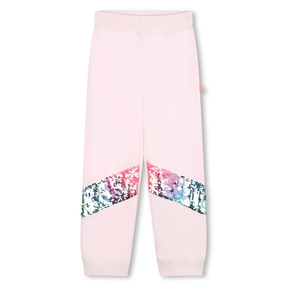 Questi pantaloni sportivi di Billieblush garantiscono un look festivo nel quotidiano. Impreziositi una fascia di paillettes sul davanti e da un orlo a costine con paillettes, sono realizzati in felpa di puro cotone.