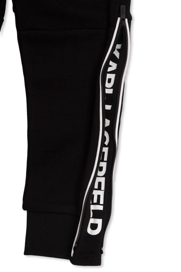 La parte inferiore di questi pantaloni da jogging dispone di zip, che a sua volta rivela il logo KARL LAGERFELD KIDS in lettere bianche su entrambi i lati. Un’altra firma si trova all’ingresso di una delle due tasche. Questo modello รจ realizzato in misto cotone.