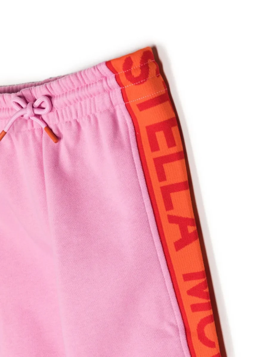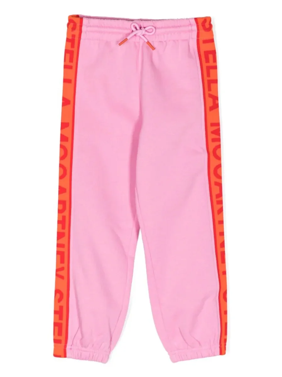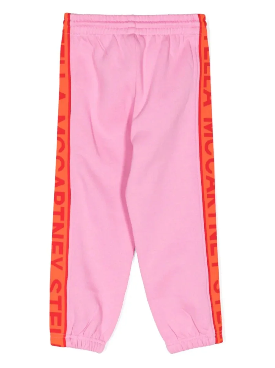 Pantalone sportivo di Stella McCartney rosa bubblegum, misto cotone, fascia con logo stampato, vita con coulisse elasticizzata, due tasche laterali a filetto, taglio straight e orli alle caviglie elasticizzati.