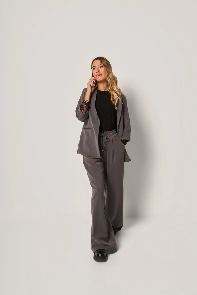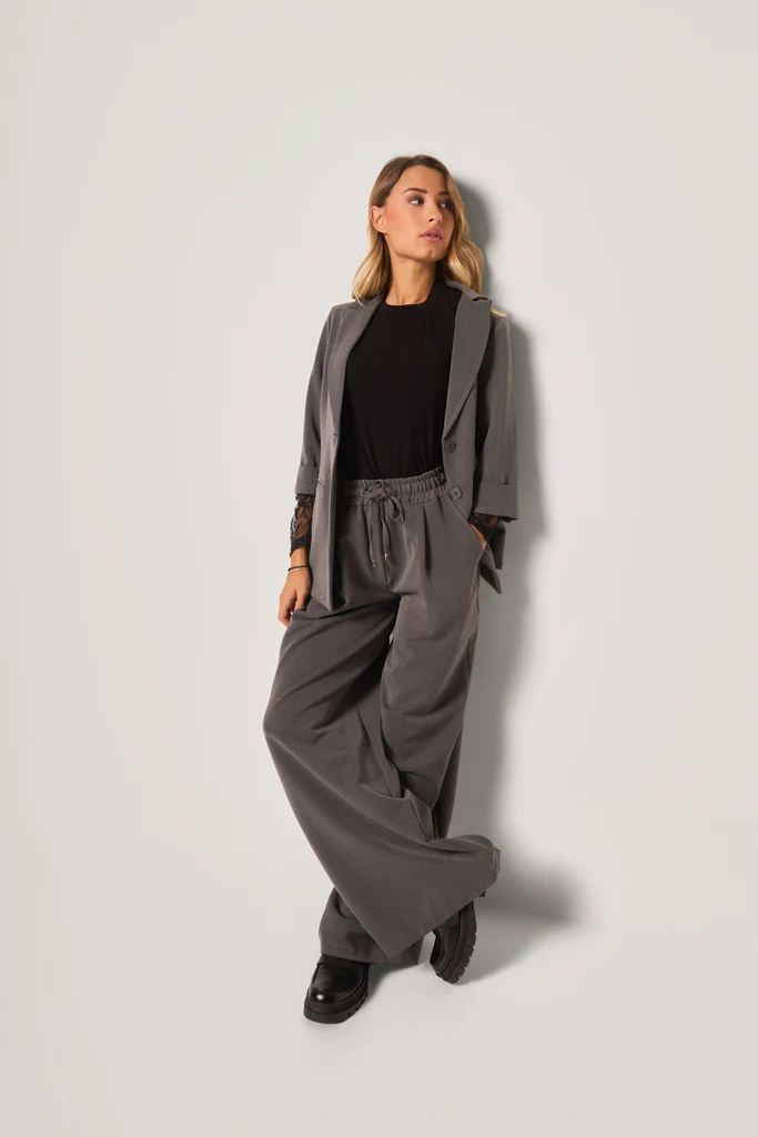 Pantaloni ampi, con vita elasticizzata e coulisse regolabile. Il modello presenta gamba larga e dritta, per un look elegante ma confortevole, e tasche laterali inserite.