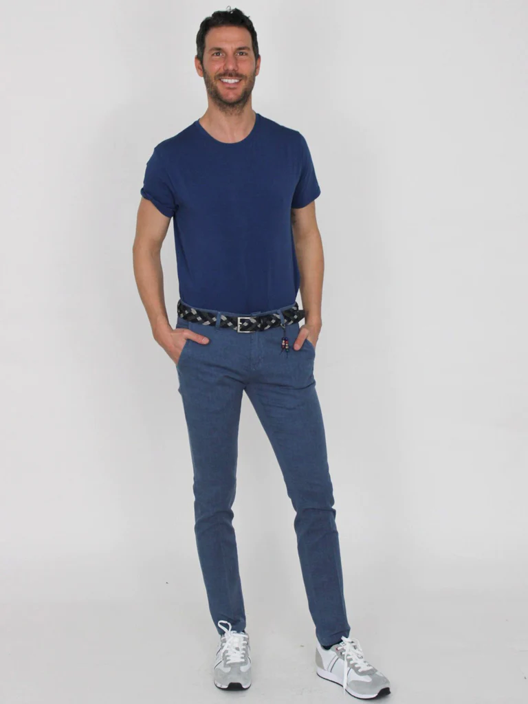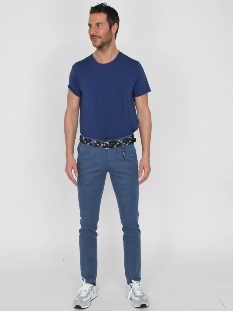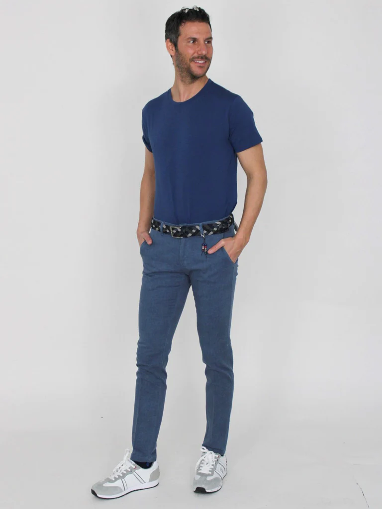 DESCRIZIONE:Pantaloni con chiusura zip piรน bottone, tasche oblique, con ciondoloComposizione: 98% cotone, 2% elastanCodice prodotto: 250205