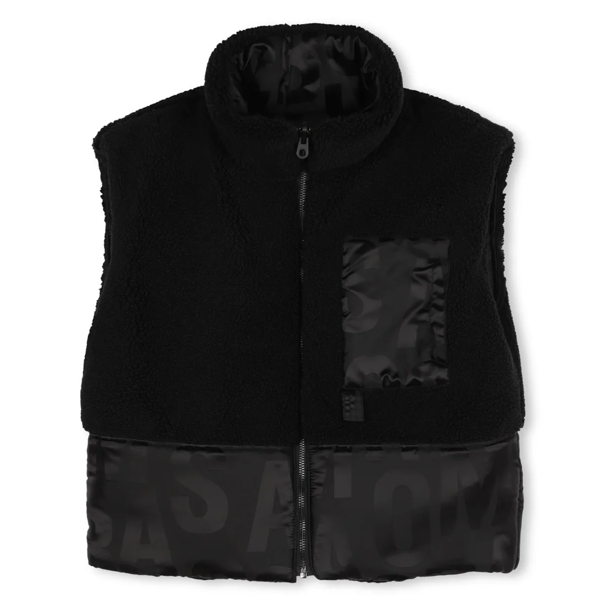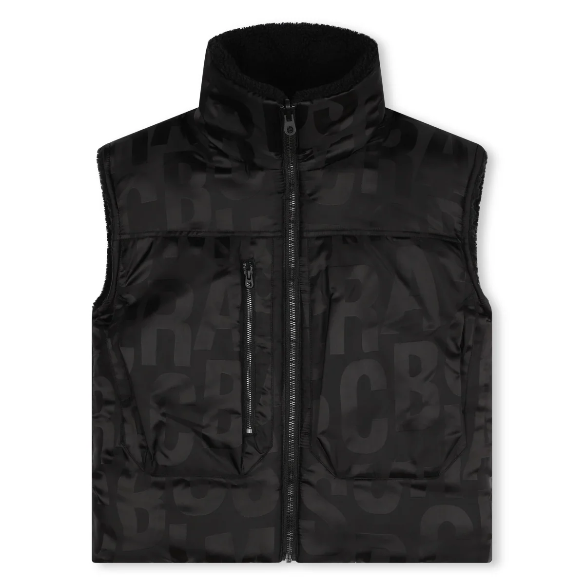 Questo piumino senza maniche MARC JACOBS รจ reversibile. Un lato รจ realizzato in tessuto peluche con una tasca sul petto e un’etichetta in silicone logata sul retro, mentre l’altro presenta una stampa all-over e una tasca con zip.