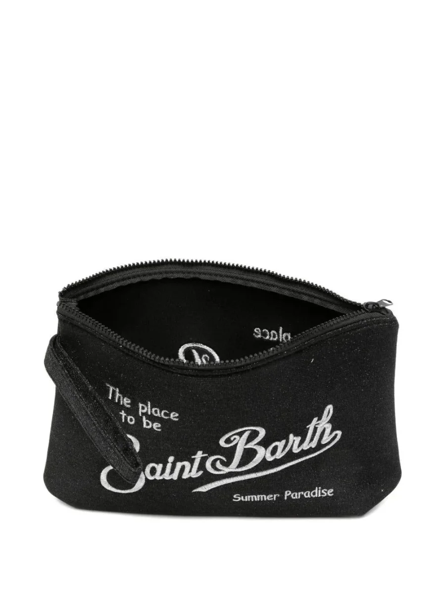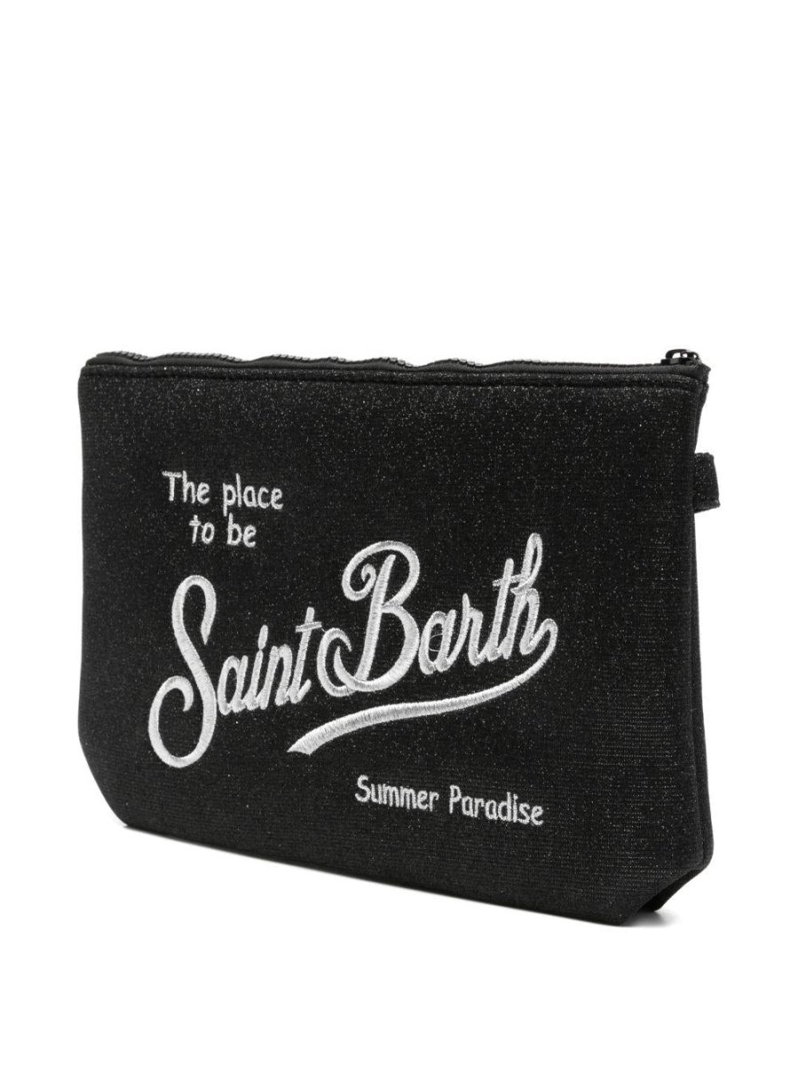 Pochette Aline MC2 Saint Barth nera con logo ricamato a contrasto Misure: 28 x 20 x 8 cmNeroLogo ricamato a contrastoDettagli glitterChiusura con zip