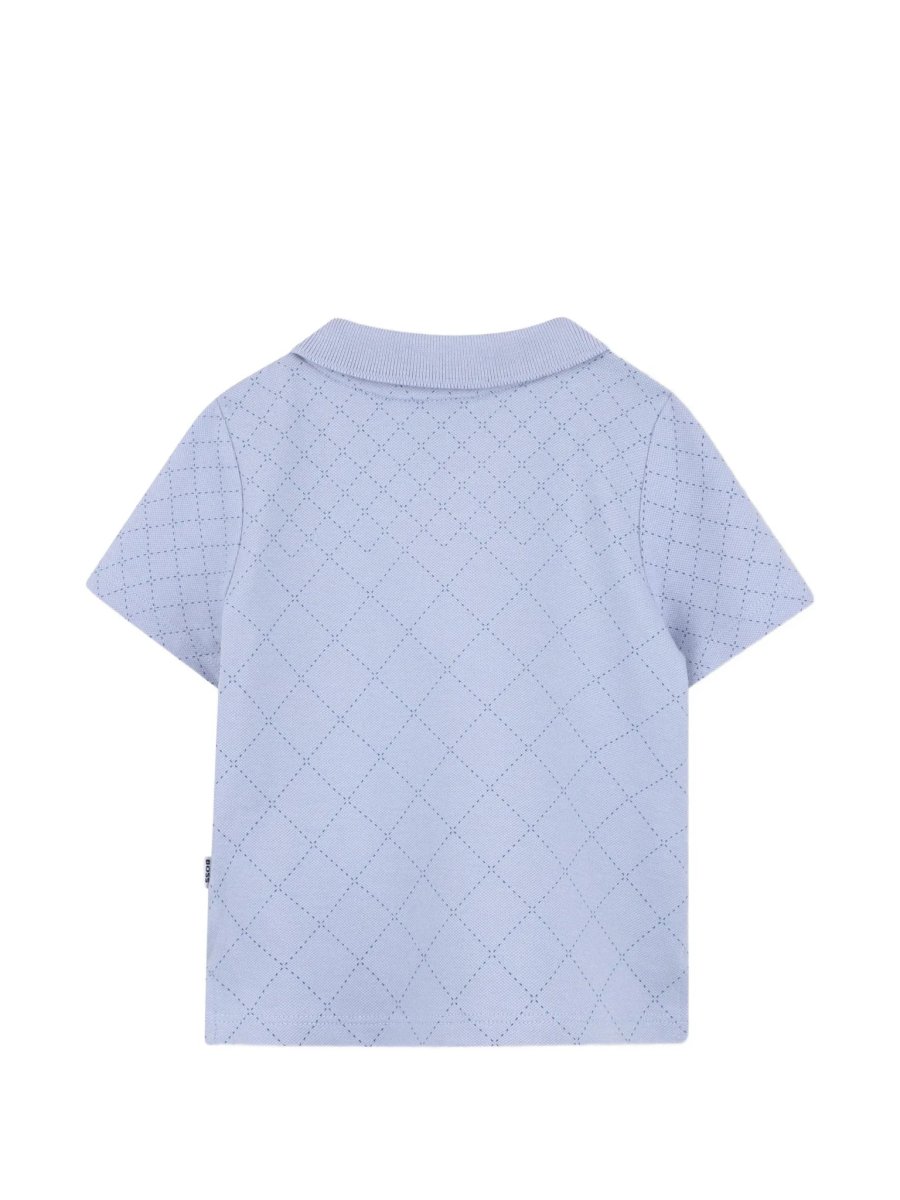 T-shirt a pois Caratteristiche azzurro applicazione con logo colletto stile polo maniche corte Composizione cotone 96%, tessuto 4%
