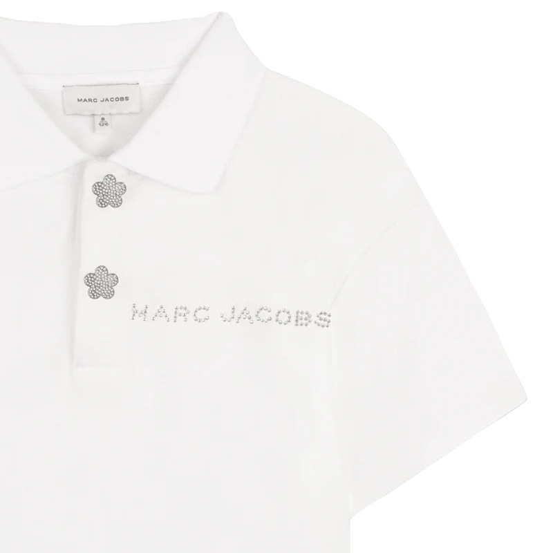 POLO BIANCA CON BOTTONI A FORMA DI FIORE IN STRASS MARC JACOBS